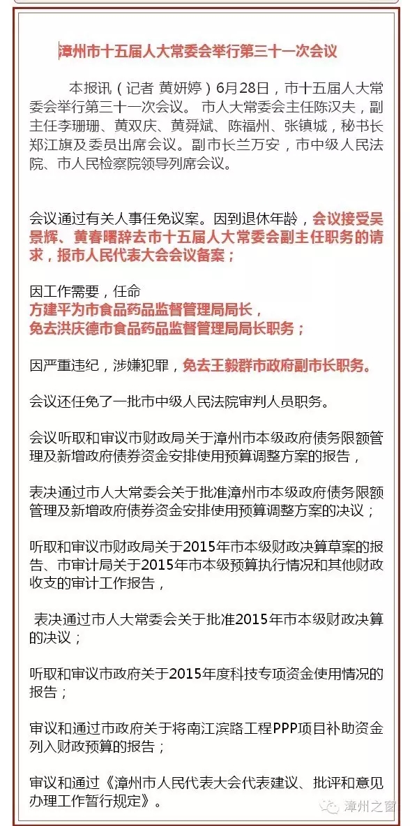 漳州人大任免一批官員、兩位市人大副主任請(qǐng)辭